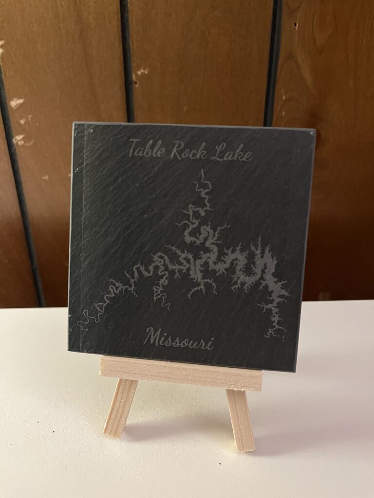 Types of laser engraved products are Laser Engraved Slate Lake Coasters, Solid Wood Lake Maps.